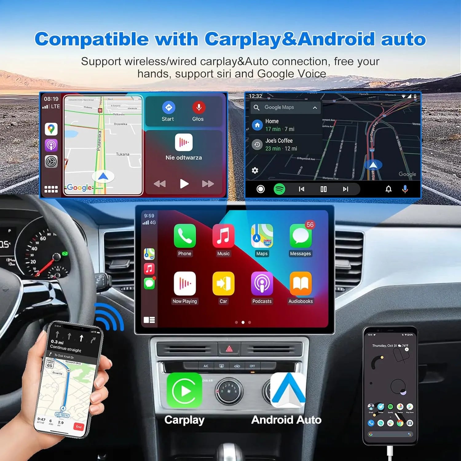 - 🔗 CarPlay/Android Auto sans fil (iOS/Android) via USB/WiFi/BT