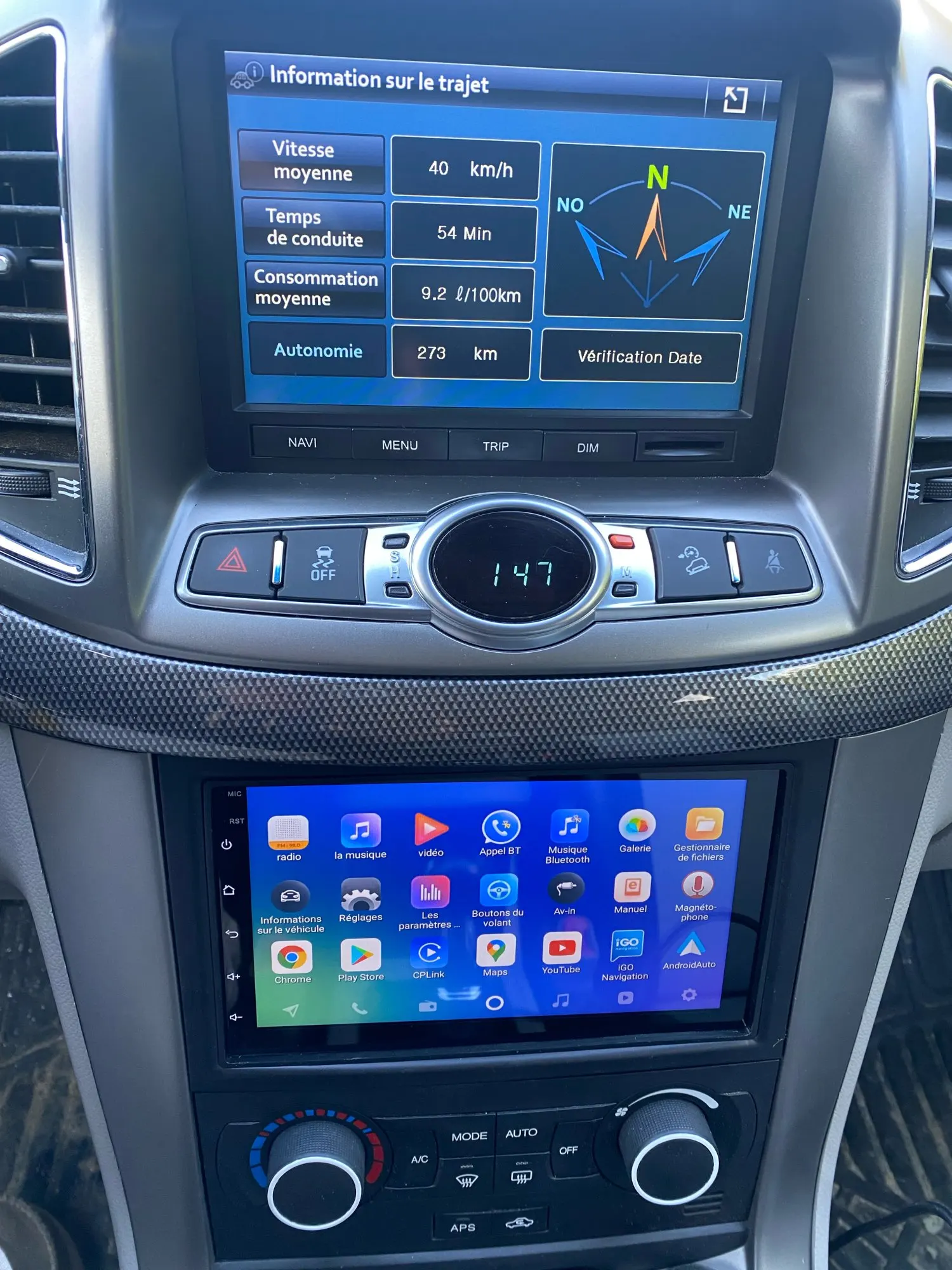 Bonjour, AUTORADIO HOXAIO pour Chevrolet captiva année 2012, excellent produit, s’encastre parfaitement dans le tableau de bord, les branchements sont compris avec l’autoradio, CAR MULTIMÉDIA SYSTEM ANDROÏD - USB - GPS - RADIO STAR - CAR PLAY - MP3 - MPEG4 - BLUETHOOT - WIFI pour un prix incroyable 70 € je recommande a 100 % cette autoradio tactile.