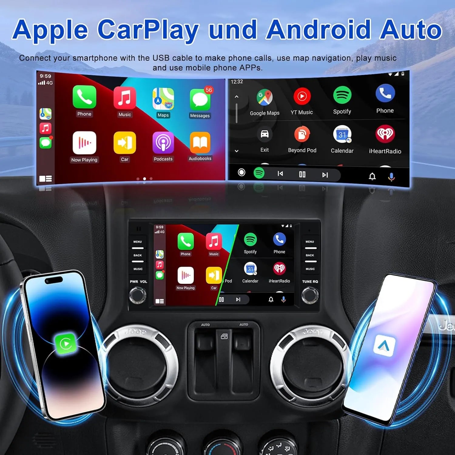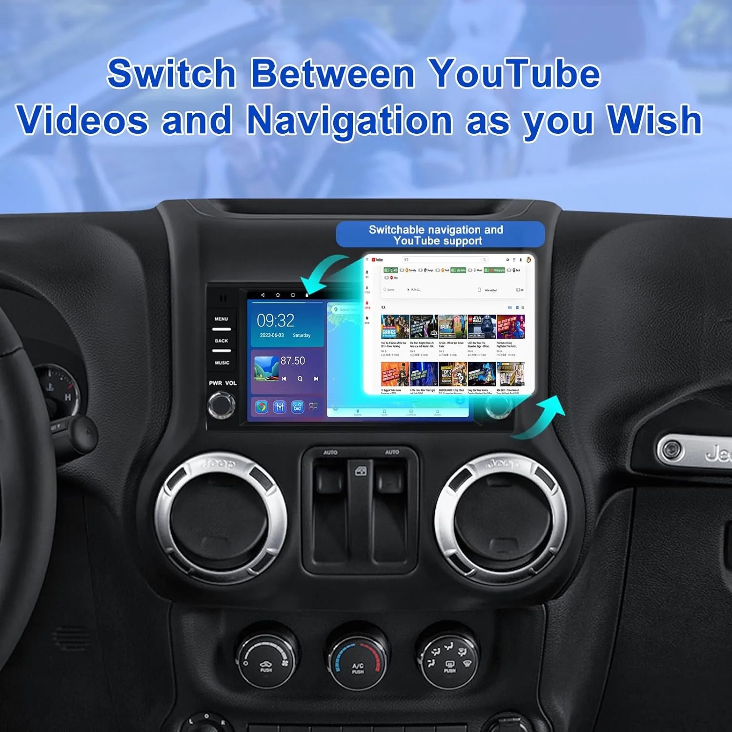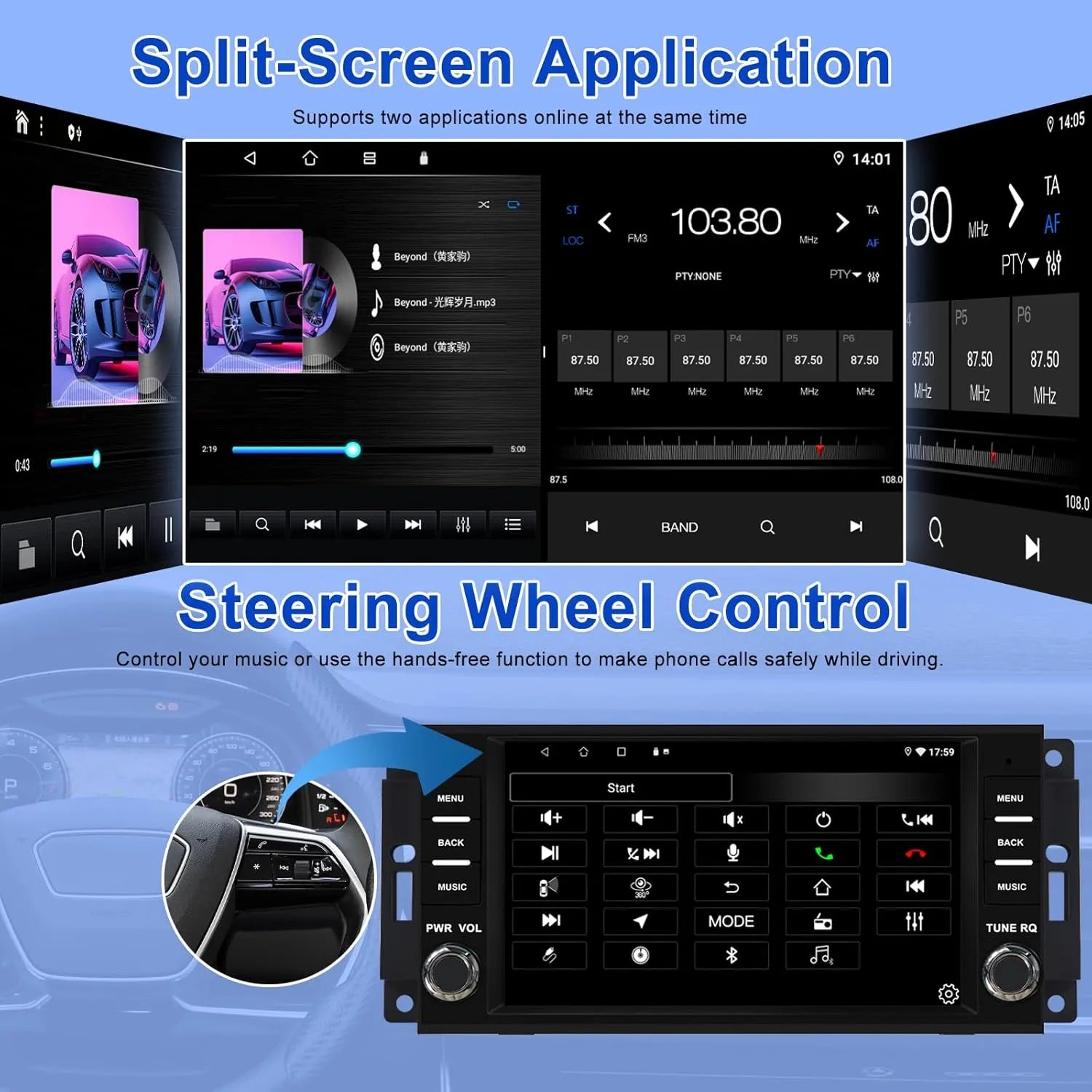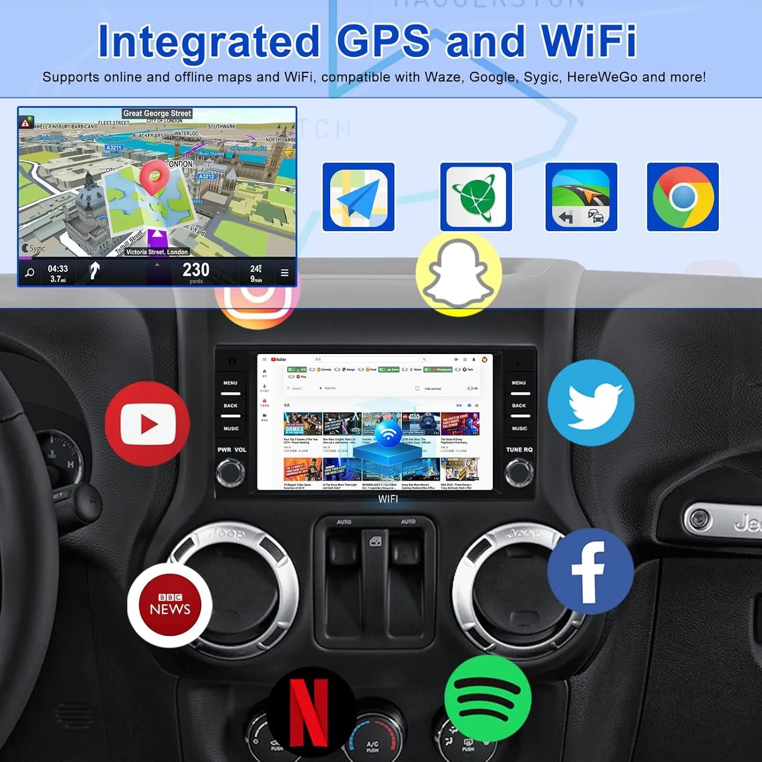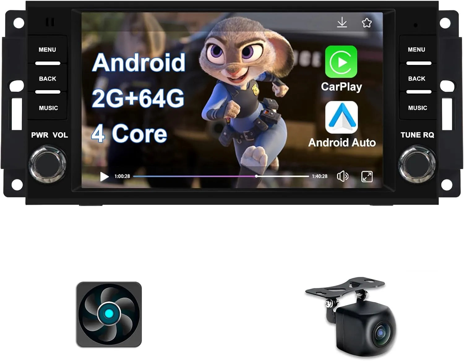 utoradio Android 7" 4+64Go Jeep Wrangler/Compass/Patriot, Chrysler, Dodge RAM - GPS, Carplay sans fil, Bluetooth, WiFi, Caméra recul