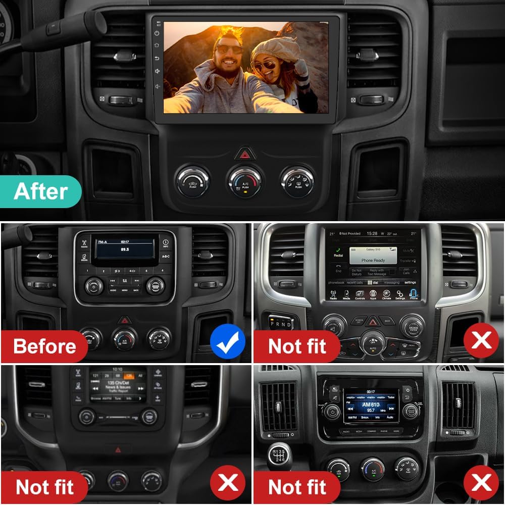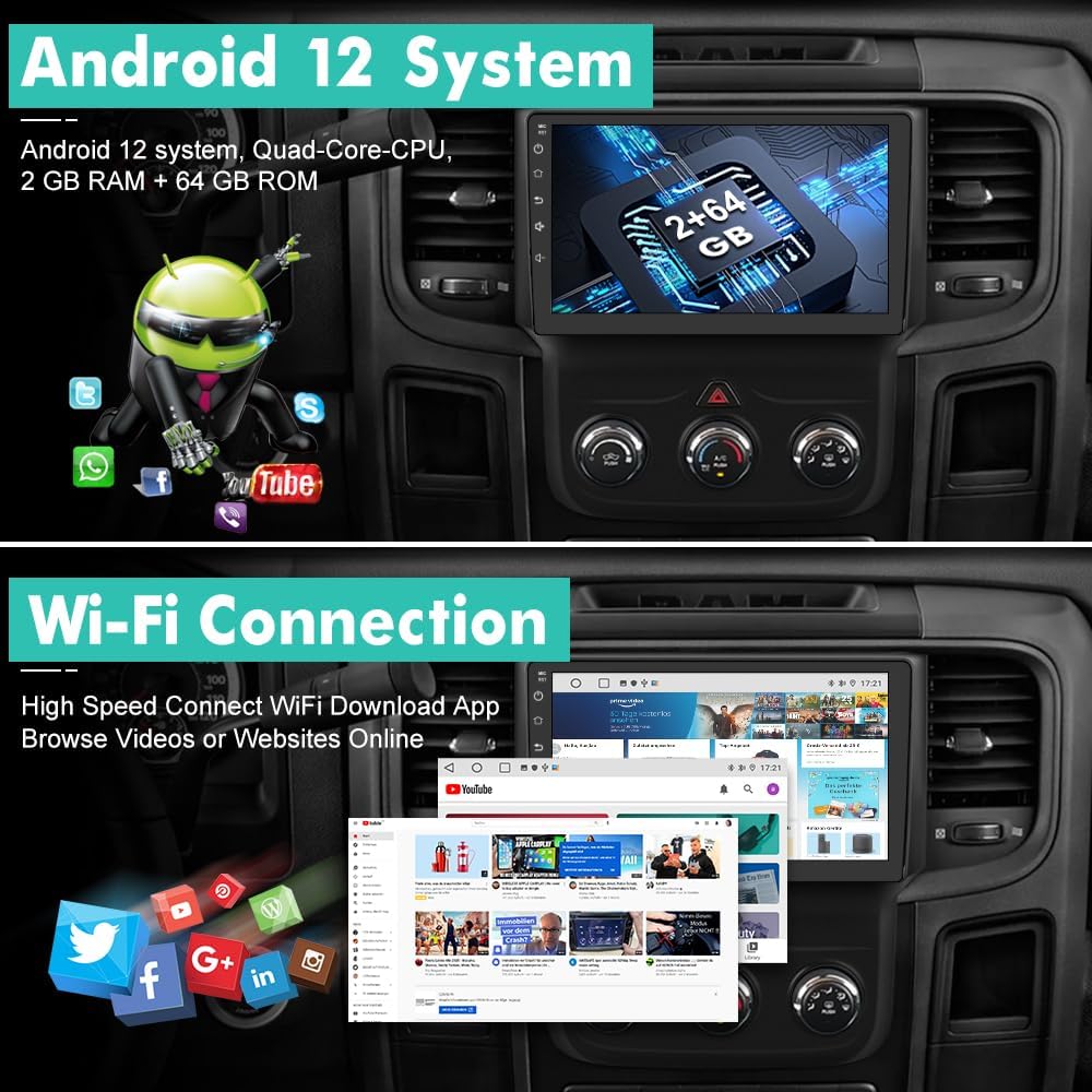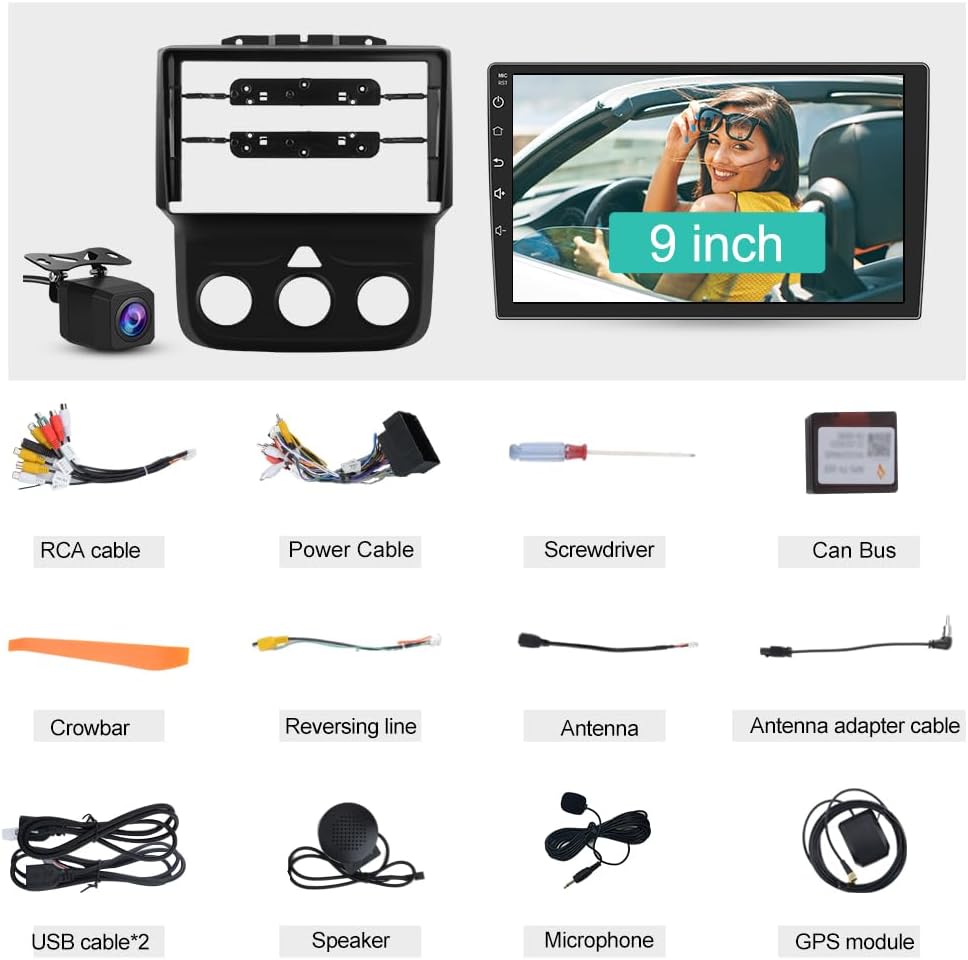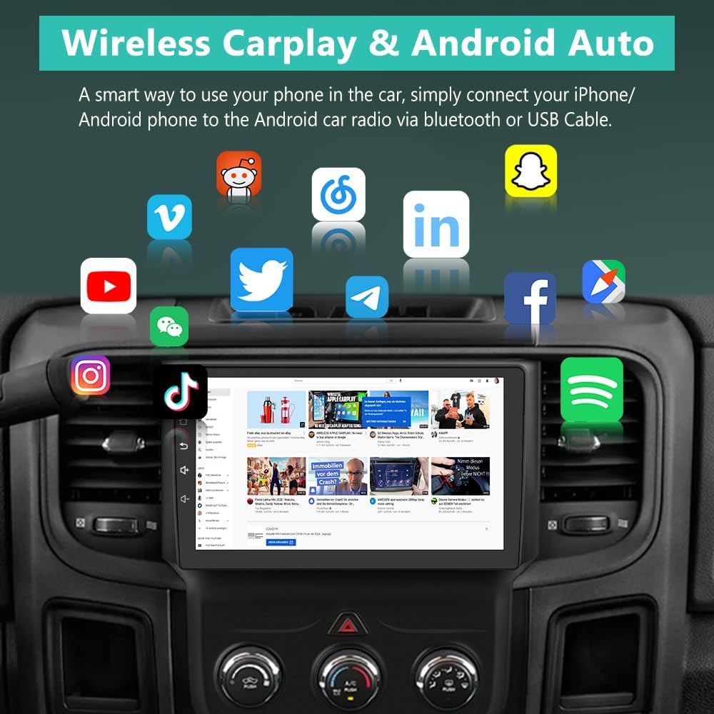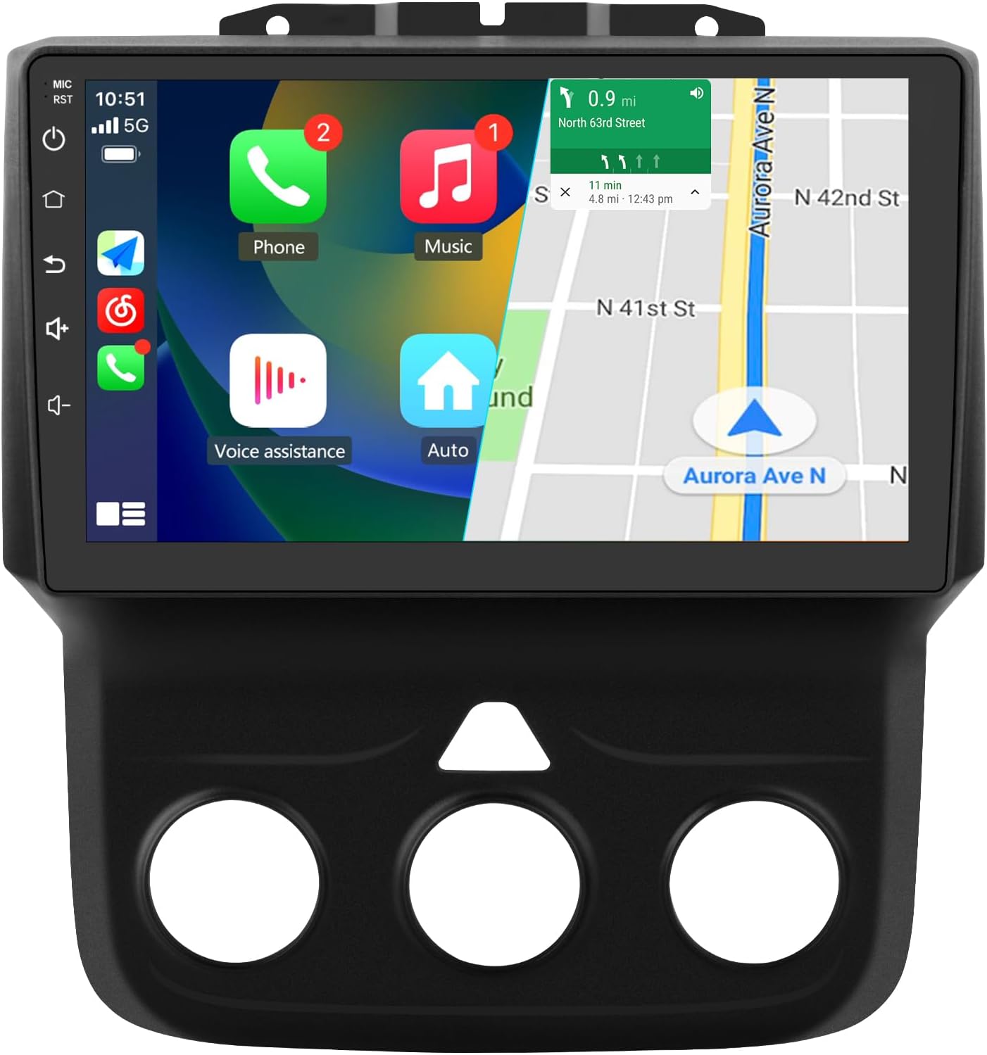 Autoradio [2+64 Go] pour Dodge RAM 1500 (2013-2018) – Carplay sans fil/Android Auto, Bluetooth, AM/FM, GPS, AC manuel uniquement