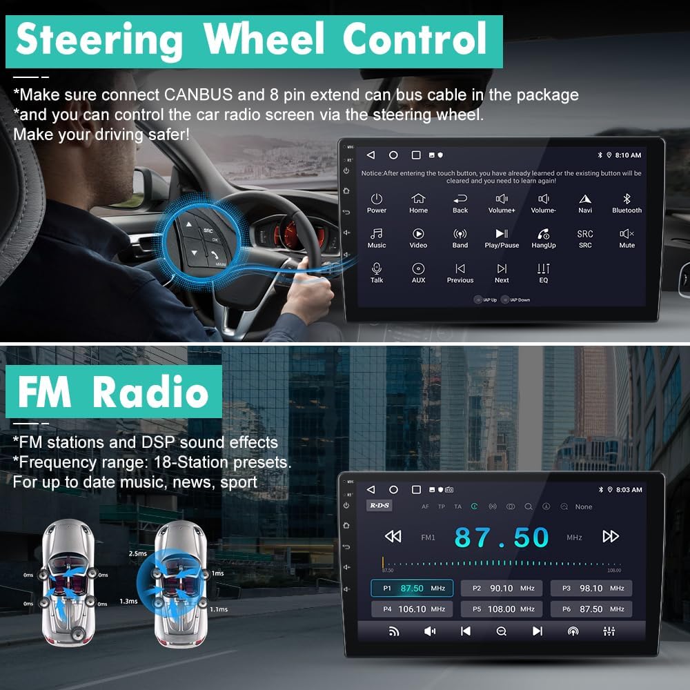 - 🎵 Radio FM avec DSP (30 stations présélectionnables) et commandes au volant intégrées