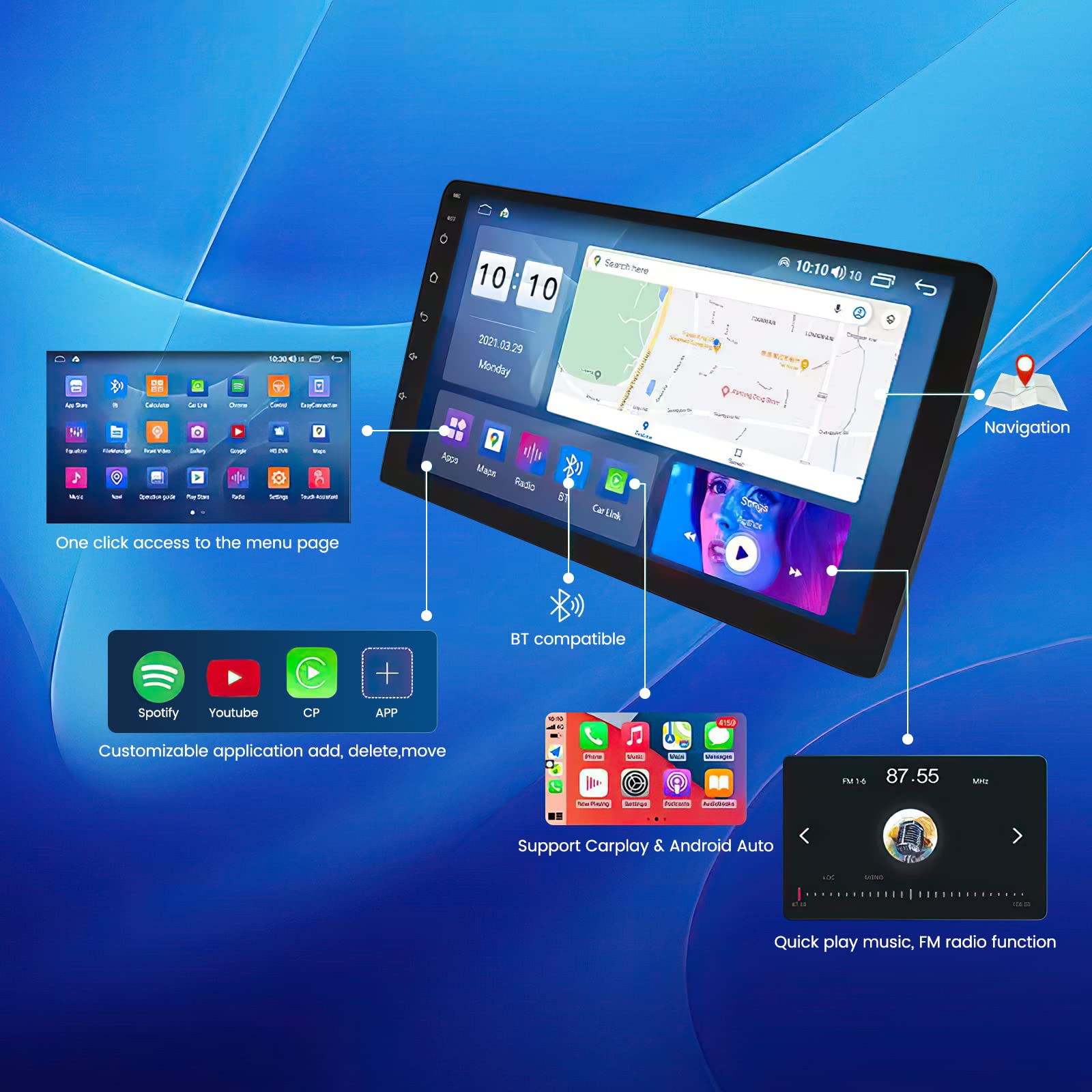 - 🔗 CarPlay/Android Auto sans fil (iOS/Android) via USB/WiFi/BT