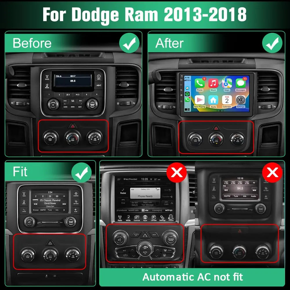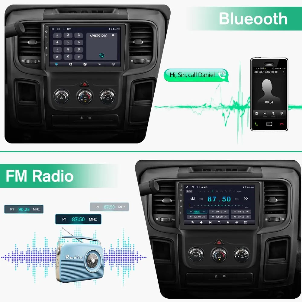 Autoradio Android 13 4G+64G pour Dodge RAM 1500-3500 (2013-2018) avec CarPlay, Android Auto, Bluetooth, GPS, WiFi, processeur Qualcomm