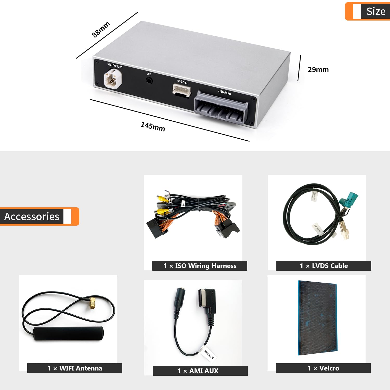 ✔ Vérification du véhicule : Avant installation, veuillez confirmer le numéro de châssis, la classe du véhicule et l'année pour assurer la compatibilité avec la boîte MMI.