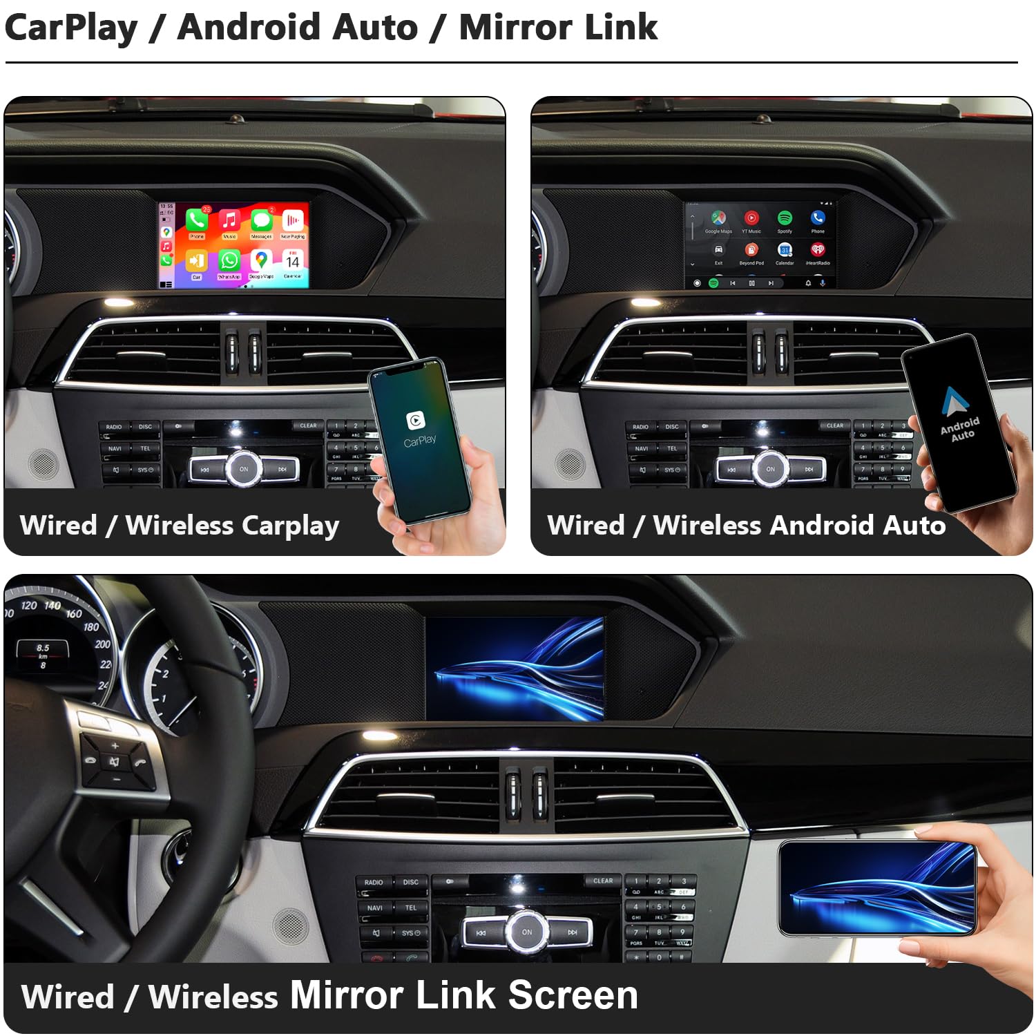 Ce kit de rétrofit CarPlay & Android Auto sans fil est conçu spécialement pour les Mercedes-Benz Classe C W205 et GLC X253 (2016-2019) équipés du système NTG5.0.