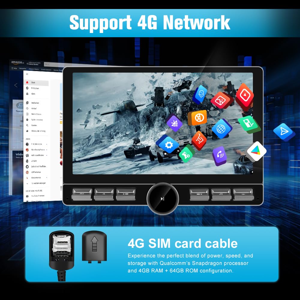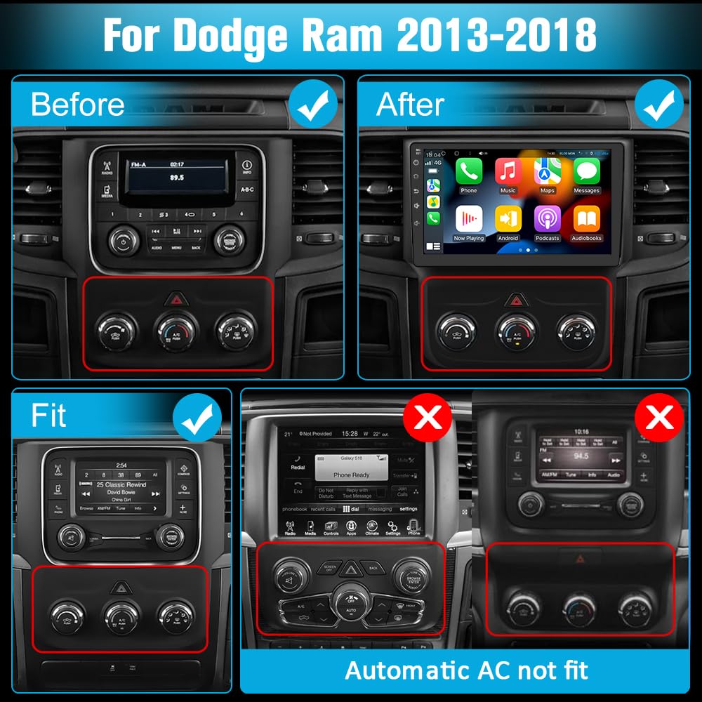 Autoradio Android pour Dodge Ram 2013-2019 : écran 10,6", 4G+64G Qualcomm 6215, Carplay/Android Auto, BT/WiFi/GPS/AM/FM/SWC/4G (SIM non inclus), AUTO AC