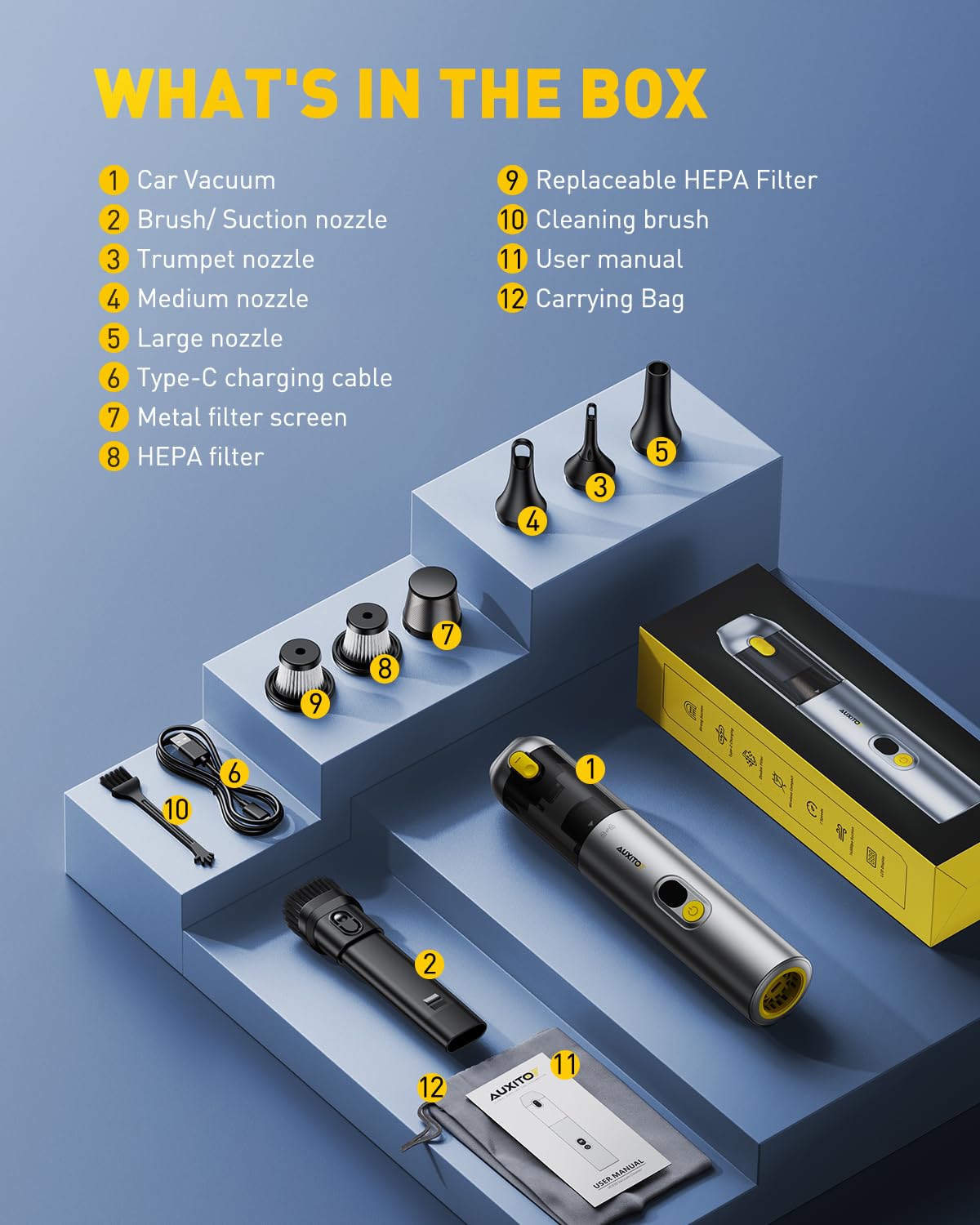 Pèse seulement 461g (le poids d'une bouteille d'eau). Design sans fil pour un nettoyage facile sans cordon encombrant. Sac de transport inclus.