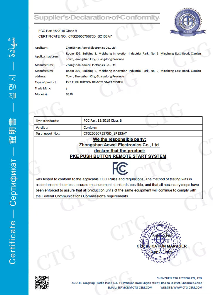 Système Démarrage à Distance & Alarme Voiture Intelligent PKE