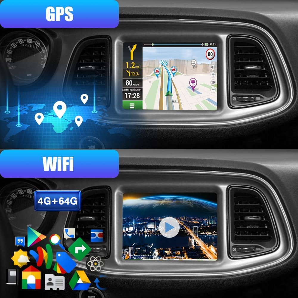 [4+64 Go] Autoradio Android 13 pour Dodge Charger/Challenger 2015-2019, radio à écran tactile avec CarPlay, Android Auto, Bluetooth, WiFi