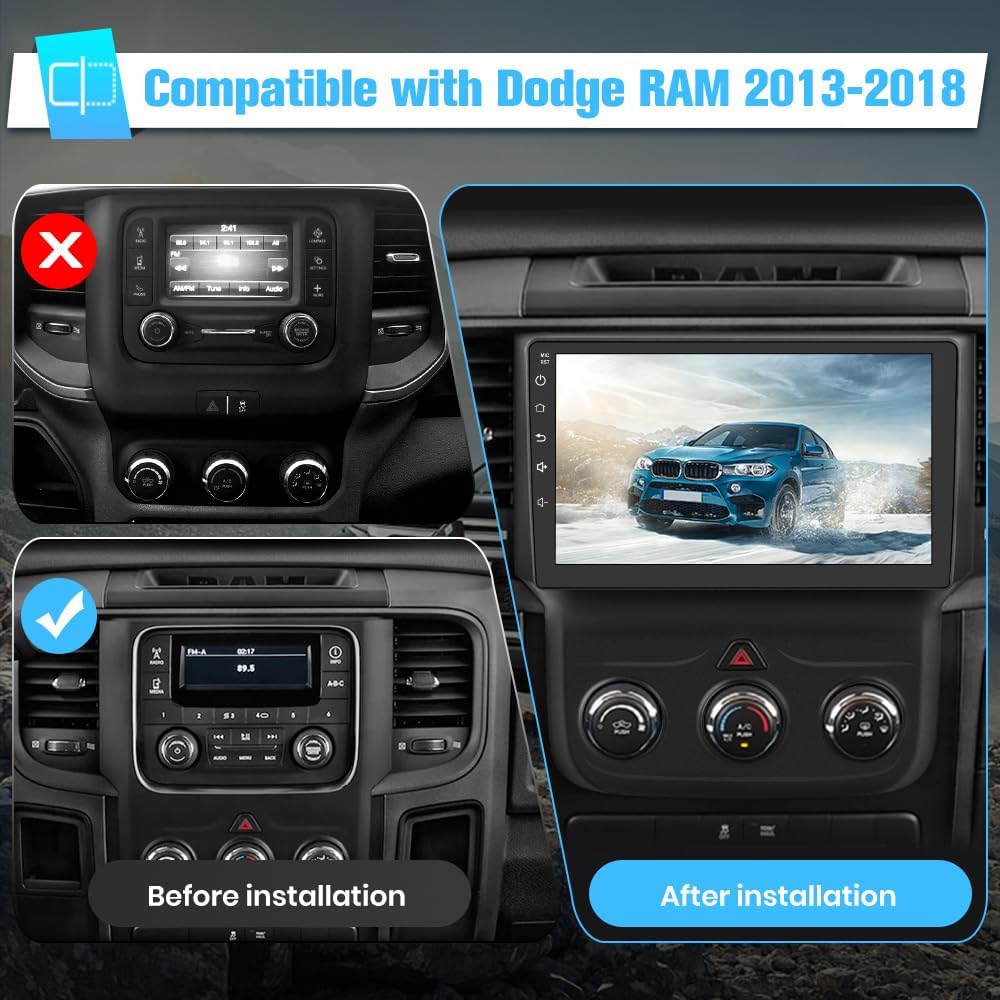 Autoradio Android 9" pour Dodge RAM 1500-3500 (2013-2018) avec WiFi 5G, CarPlay, Android Auto, 2+32 Go - Manuel AC uniquement