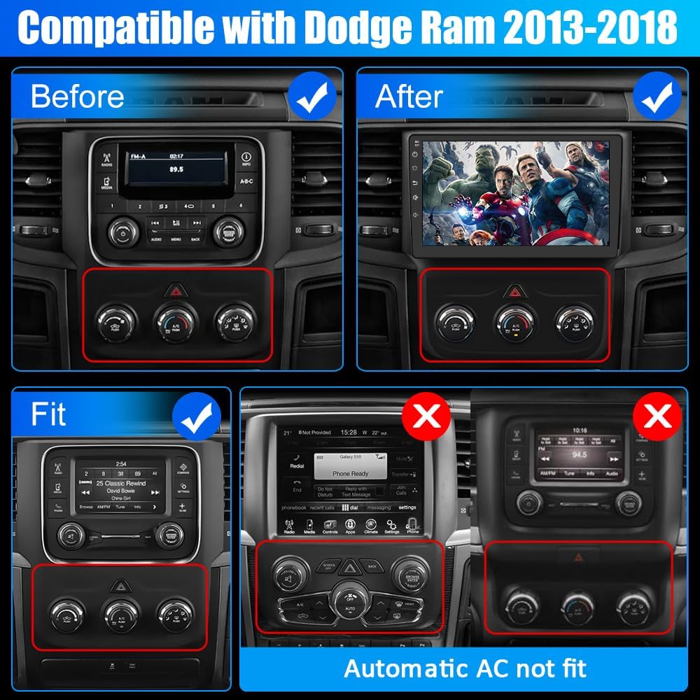 Stéréo de voiture Android pour Dodge RAM 1500-3500 (2013-2018) avec CarPlay sans fil et Android Auto, 2 + 32 Go, remplacement manuel de la radio compatible AC