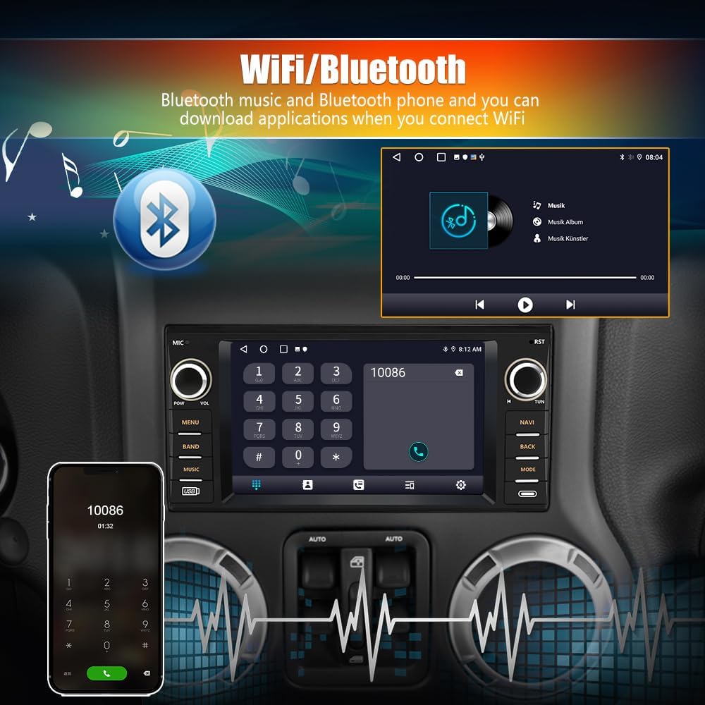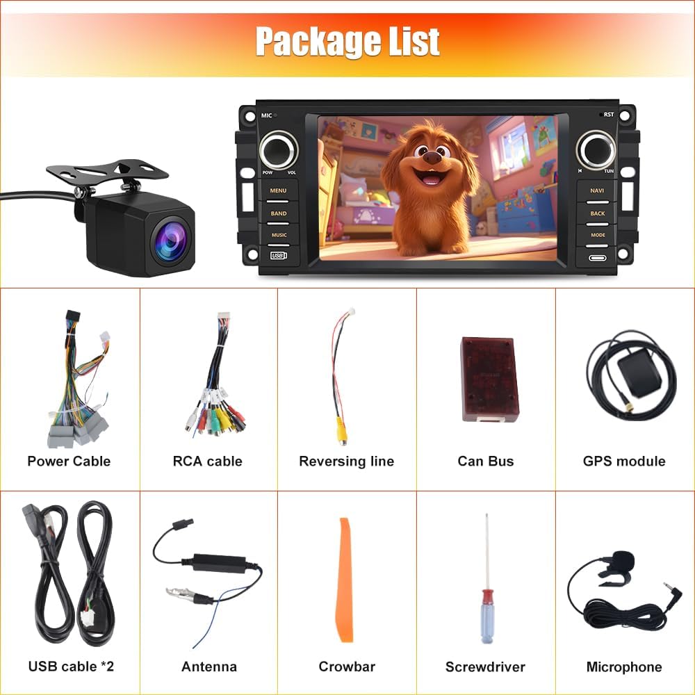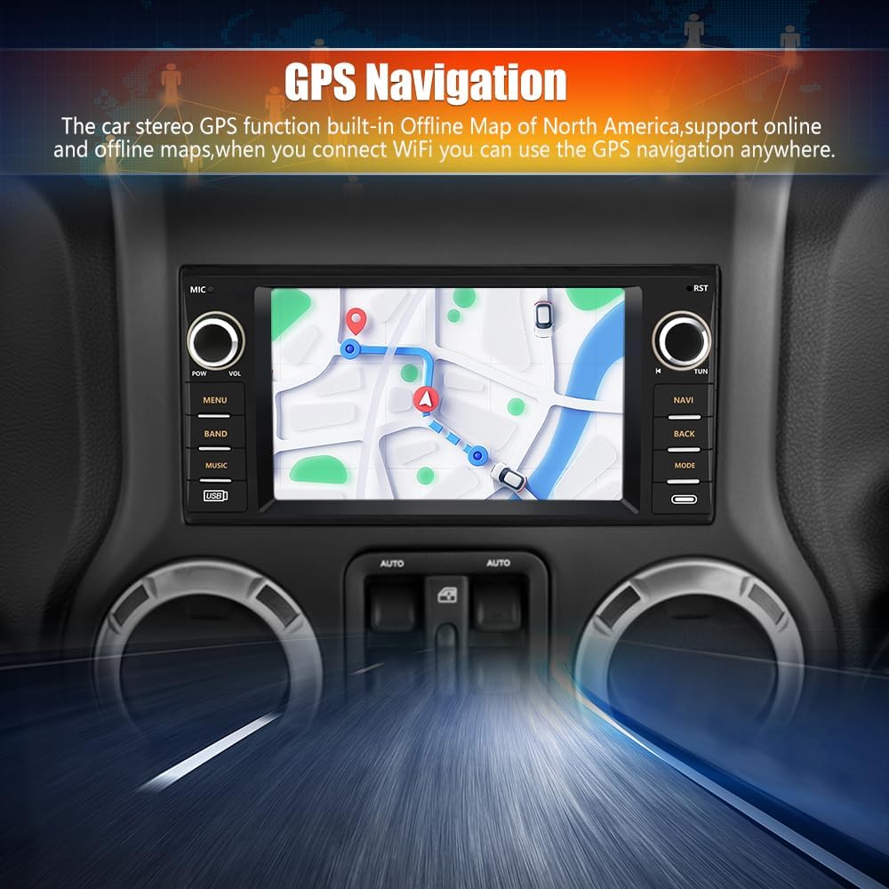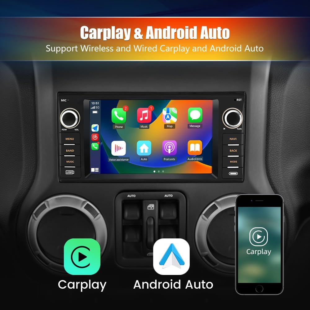 Autoradio pour Jeep Wrangler JK, Chrysler Dodge Ram 1500, écran tactile 7" avec CarPlay sans fil, Android Auto, WiFi, radio FM, caméra de recul